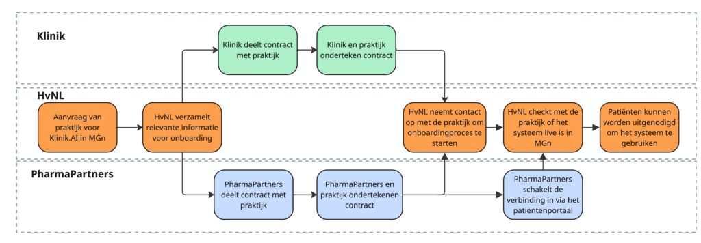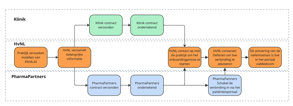 De implementatie verloopt zeer snel, doorgaans slechts een week na het tekenen van de contracten. Onderstaande afbeelding geeft een overzicht van het proces.